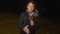 The strongest winds of the northeast eyewall smashed into Oak Island, North Carolina, overnight, bringing high storm surge and strong winds.