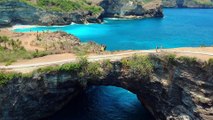Woman Meditating In Yoga Warrior Pose At The Ocean, Beach And Rock Mountains. Yoga Pose