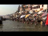 Devotees took holy dip in River Ganga after the partial Lunar Eclipse in Varanasi on Wednesday. Meanwhile, people also took holy dip and offered prayers in Prayagraj. Partial lunar eclipse was seen in different parts of country. It was the last lunar eclipse of this year.