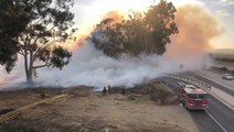 A small vegetation fire in Orange County, California grew to 6 acres on Dec. 13, but its progress was quickly stopped by crews with the Brea Fire Department.