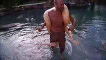 Il nage avec son python birman dans sa piscine