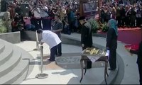 "Atas nama pribadi dan keluarga besar Bung Karno saya mengucapkan terima kasih dan penghormatan secara khusus kepada bapak Menhan Prabowo dan sekaligus sahabat saya atas peresmian patung Bung Karno ini," ucap Megawati.
