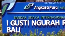 Penumpang pesawat udara membawa barang bawaan di Terminal Domestik Bandara Internasional I Gusti Ngurah Rai, Badung, Bali.
