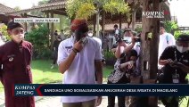 Menteri Pariwisata dan Ekonomi Kreatif, Sandiaga Uno yang berkunjung ke kawasan Candi Muaro Jambi memberikan penghargaan Anugrah Desa Wisata untuk Desa Muaro Jambi, Kecamatan Maro Sebo, Kabupaten Muaro Jambi, Jambi.