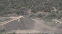 This dirt bike rider was dared to ride across a log of wood. Unfortunately, he lost his balance amidst the trick. He then fell to the ground after his unexpected fail. Thankfully, he didn't seem too hurt as he got up all by himself after his miserable fall.