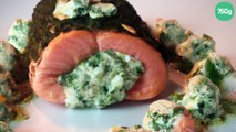 Saumon farci au fromage frais et au pesto