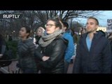 Dozens of anti-G7 protesters demonstrate near Elmau Castle in the Bavarian Alps, where the G7 summit is being held.