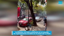 Incidentes, corridas y piedrazos en un piquete de organizaciones sociales en el centro de La Plata