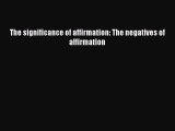 Download The significance of affirmation: The negatives of affirmation Ebook Free