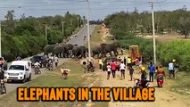 Herd of Elephants Crosses Road