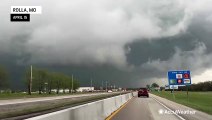 Storm chaser Reed Timmer captured this ominous supercell hovering over a bridge in Dallas, Texas, during a tornado warning on March 16.