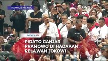 Ganjar sampaikan pidato singkat pada relawan yang hadir. Ia mengajak kekuatan Parpol dan relawan untuk Pilpres 2024 bersatu.