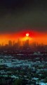 The land below is in darkness, apart from the orange glow of the fires, which can be seen for miles.