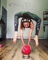 Stefanie Millinger met ses lunettes avec ses pieds en équilibre sur un ballon