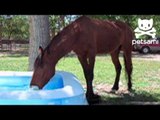 On a sweltering day in Texas, this dog splashed some water on themselves before relaxing in the pool to cool down.