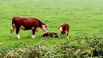 Her massive frame quivered with tension, and her bellow echoed through the air, a warning to stay away from her precious calf. It was as if she were speaking in a language all her own, a primal message of protection and defiance.