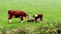 The mama cow's eyes blazed with fury as she watched the lady pull her calf into the pickup truck.