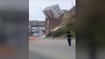 Moment building collapses onto road after landslide in Mexico