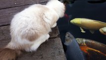 This Cat Really Wants A Kiss From The Koi Fish. Watch What Happens When He Leans In!