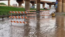This video from Interstate 64 in Nashville, Illinois, shows a man swimming across a flooded median to the other side of the highway then swimming back on July 16.