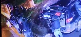 As câmeras de segurança flagraram a ação dos bandidos que mataram um vigilante e levaram um malote de dinheiro em um supermercado em Natal.