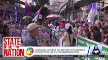 Transport group Manibela and Piston hold a protest rally along España Boulevard in Manila on Wednesday, August 14, to condemn Malacañang's rejection on the Senate's proposal to suspend the public utility vehicle (PUV) modernization program of the government. (Noel B. Pabalate)