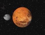 The planet Mars as observed above surfaces of its moons