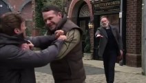 Mick has sent Liam for bacon sarnies, but he's failed to come back, worrying Gary. Gary returns to the yard to find Mick looking for something in the shed. Gary locks him in to give him a taste of his own medicine before telling him he’s fired. Mick tells him he'll regret his actions. Mick corners Gary in Viaduct Street and punches him to the ground. Grabbing an empty bottle, Gary staggers to his feet, but suddenly Kit steps in. Kit orders Gary to drop the bottle and sends Mick on his way. Gary is staggered that Kit is taking no action against Mick. Gary finds the yard has been wrecked. Passing by, a grinning Mick tries to provoke him into another fight.