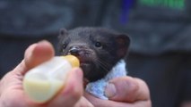 Aussie Ark introduces Tasmanian devil joeys Knuckle and Blaze