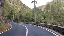 Unos ciclistas se encuentran un oso pardo en la carretera en Transilvania