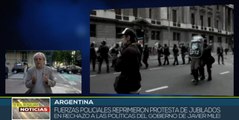 Manifestantes que protestaban frente al Congreso de Argentina contra las medidas neoliberales del presidente Milei fueron reprimidos por la policía, en incidentes que dejaron más de 20 personas heridas.teleSUR
