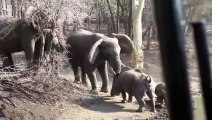 Intense Standoff Between Angry Elephant And Mother Rhino