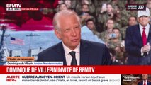 Dominique de Villepin, ancien Premier ministre, était l'invité de Guillaume Daret, dans "BFM Politique", sur BFMTV. Il est revenu sur la guerre au Moyen-Orient.