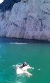 Insane plunge from 120-foot cliff