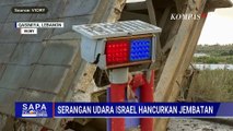 Jembatan di Qasmiyeh, Lebanon Selatan rusak akibat serangan udara Israel pada Rabu malam waktu setempat.