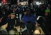 New York City police arrested the protesters after they refused to end a blockade of a street intersection in the city's financial district. Some protesters, who resisted orders to leave, scuffled with the officers.