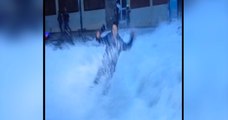 Grande marée : une journaliste renversée en direct par une vague