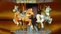 Lutèce Créations, spécialiste des boîtes à musique et des automates présente un carrousel musical miniature de sa collection de manèges musicaux animés (carrousels, grandes roues et autres manèges miniatures).
