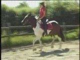 RED RIVER, jument pinto de 3 ans se déplace en carrière, d'abord en liberté, puis montée....
